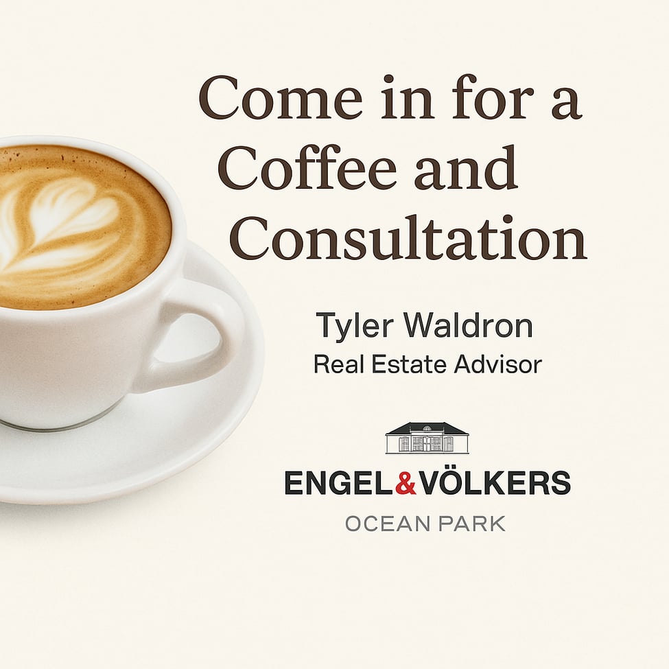 I’m Tyler Waldron, Real Estate Advisor with Engel & Völkers Ocean Park. Come by for a coffee and a no-pressure consultation—I’ll walk you through the community highlights and help you plan your next move with confidence.